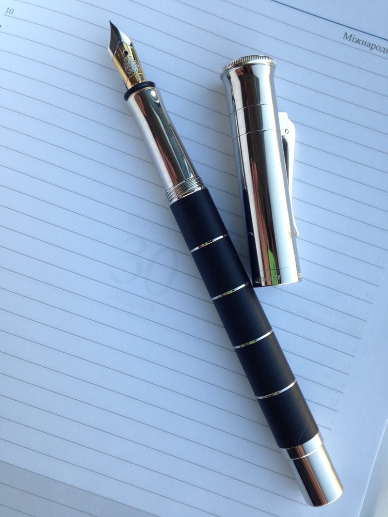 Продам перьевую ручку Graf von Faber-Castell серия Classic Anello коллекция Ebony. Перо сделано из золота в 18 карат с иридиевым наконечником (ручная работа). Варианты толщины пера: *0-M (среднее), *1-F (тонкое), *2-EF (сверхтонкое), *3-B (широкое), *4-OM (наклонное среднее) и *5-OB (наклонное широкое). Основные этапы производства одного изделия выполняются, исключительно, вручную. Идет в ДЕРЕВЯННОЙ подарочной упаковке. |