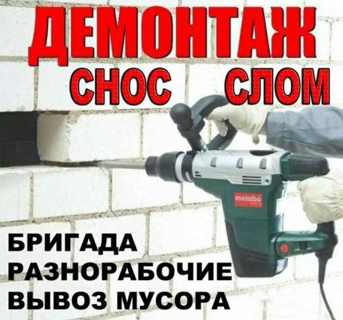 Акция!Найдете дешевле,сделаем еще дешевле. Бригада выполнит демонтаж любых видов и сложностей в поставленные сроки и качественно. Вывоз строительного мусора ЗИЛ. Строительные услуги по оптовым ценам. Звоните и мы всегда договоримся. Наш сайт:demontazh.co.ua |