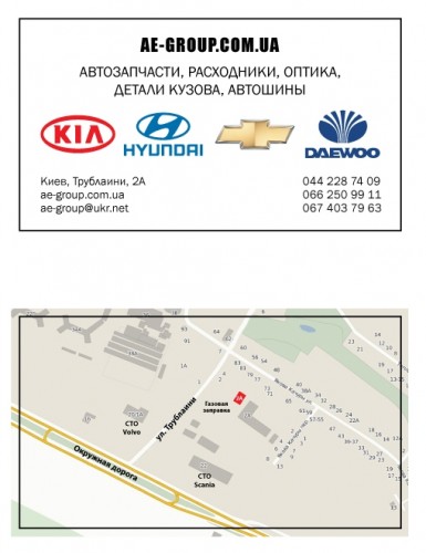 Автомагазин "AE-GROUP.COM.UA", мы предлагаем большой ассортимент расходных материалов, запчастей, деталей кузова и оптику на корейские автомобили торговых марок: Kia, Hyundai, Daewoo, Chevrolet, большое наличие, работаем под заказ. Контакты: Киев, ул.Трублаини 2А, 044-228-74-08, 066-702-21-11, 067-500-79-41 |