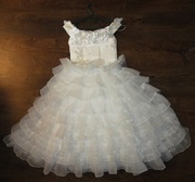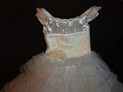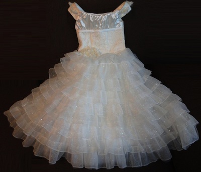 Очень красивое, с блестками, переливается. Сзади корсет затягивается. На возраст 6-10 лет. Длинна от верха топа до низа 96см, длинна юбки 68, ширина без утяжки под ручками 31, вся длинна от бретелек до низа 102см. Прокат 130грн. Залог 300грн. Продажи нет. |