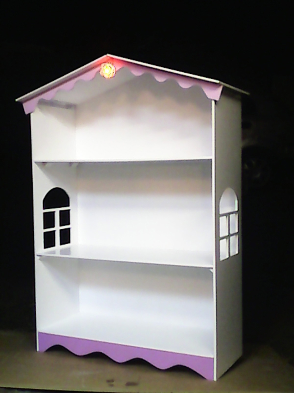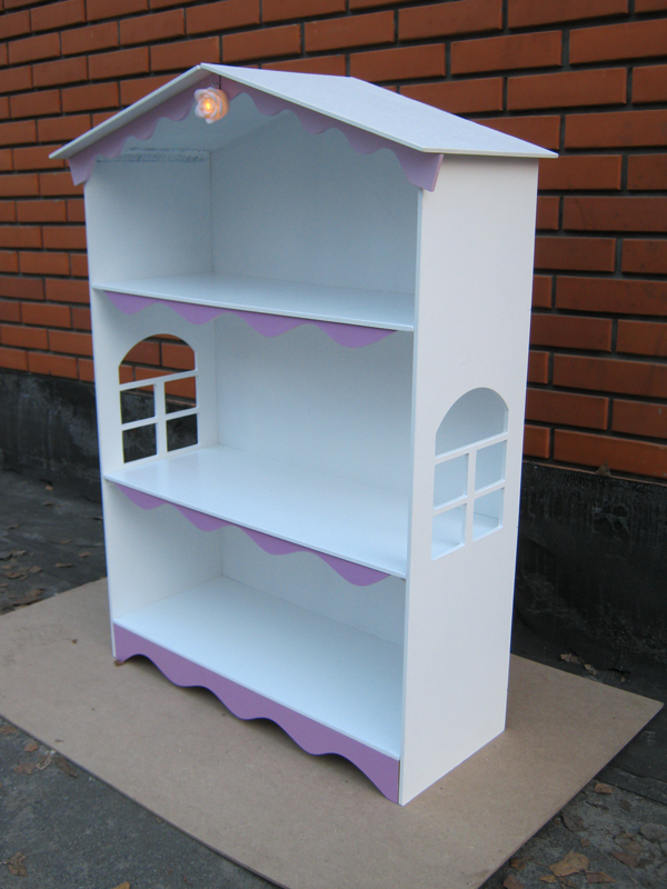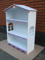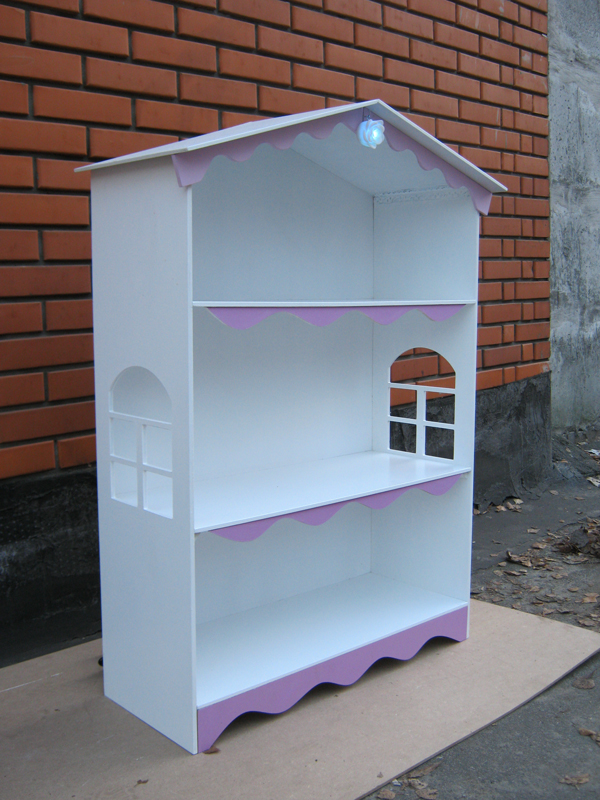 Каждая девочка мечтает иметь у себя домик для кукол. Но не всегда хватает места и что делать потом, когда она вырастит? С нашим домиком для кукол и этажеркой для книг, вы можете не волноваться что нужно будет его продавать. Он послужит еще много лет в качестве полки для учебников, книг, поделок ребенка, и т.д. Домик высокий и удобный. В верхней части под крышей расположен ночник в виде цветка, работающий от батареек и светится разноцветными цветами. Таким образом ребенок не будет бояться засыпать.