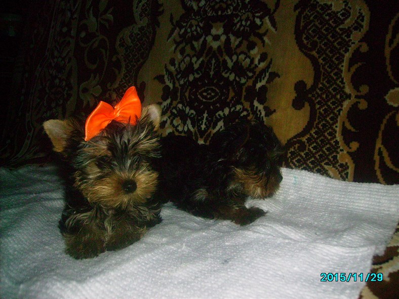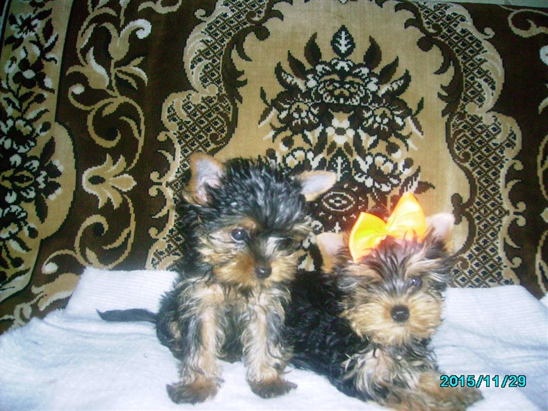 Девочки йоркширского терьера, мини. Привиты по возрасту, ветеринарный паспорт, родословная. Ожидаемый вес взрослой собаки - +2 кг. Приучены к пеленке и лотку. Ушки стоят. Родители наши. Правильная шерсть без подпушка.