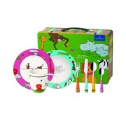 Набор детской посуды от Villeroy & Boch – это полный комплект, который состоит из посуды и столовых приборов. Тарелки и чашка сделаны из фарфора, вилки и ложки – из первоклассной нержавеющей стали. Яркий рисунок понравится Вашему ребенку! Этот набор детской посуды из коллекции Funny Zoo упакован в металический чемоданчик. Это отличный подарок на любой праздник для Вашего ребенка или крестника! Благодаря универсальной расцветке, комплект подойдет как для мальчика так и для девочки. Страна производитель Германия Комплект Тарелка глубокая – 1 шт Тарелка мелкая – 1 шт Чашка – 1 шт Ложка столовая – 1 шт Вилка столовая – 1 шт Нож столовый – 1 шт Ложка чайная – 1 шт |