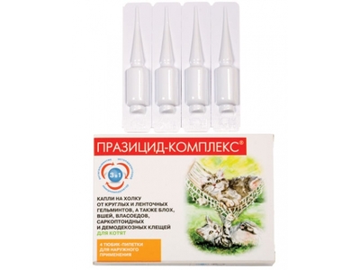Препарат комплексного действия против наружных и внутренних паразитов у котят.
