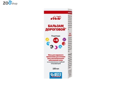 Дозы и способ применения. Небольшое количество Бальзама Дороговой наносят 1-2 раза в день на поврежденный участок кожи, равномерно распределяя тонким слоем. Можно применять в виде компресса или под повязку. Дополнительная обработка свищей и плохо заживающих ран (путём введения дренажа с небольшим количеством мази в рану или свищевой ход) способствует более быстрому заживлению раневой поверхности. Не содержит токсических веществ, поэтому животное может слизывать его не подвергаясь риску отравления. Хранение. Хранить в упаковке производителя, в защищенном от света, недоступном для детей и животных месте, при температуре от 0 до 25°С. Упаковка: флакон 100 мл Единица отпуска товара: 1 флакон 100 мл