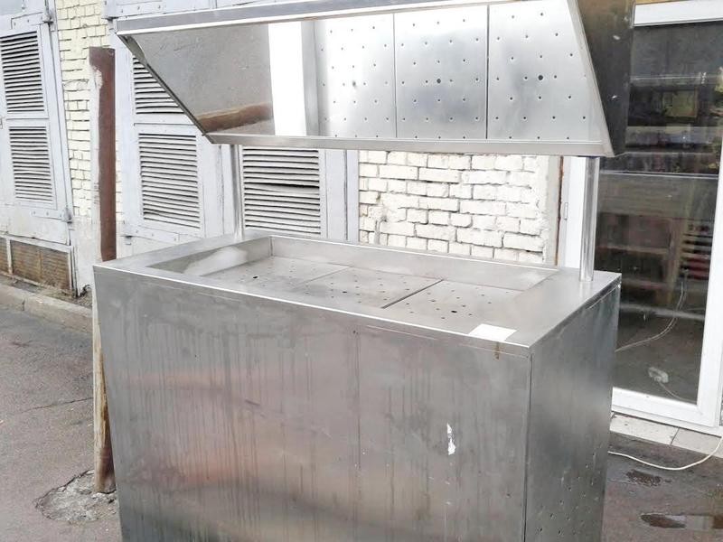 Витрина бу рыба на льду зеркальная. Данная витрина б/у отлично подойдет для охлаждения и демонстрации фруктов, овощей, мяса, рыбы на льду. Благодаря перфорированной поверхности холодный воздух поддерживает необходимую температуру продукции. Салат бар бу предназначен для выставки охлаждаемых продуктов в магазинах, ресторанах и других заведений с системой самообслуживания. Охлаждаемая витрина выполнена с зеркальным навесом для эффектной демонстрации охлаждаемых блюд и продуктов. Габаритные размеры витрины 1250х620х1100 мм.