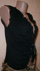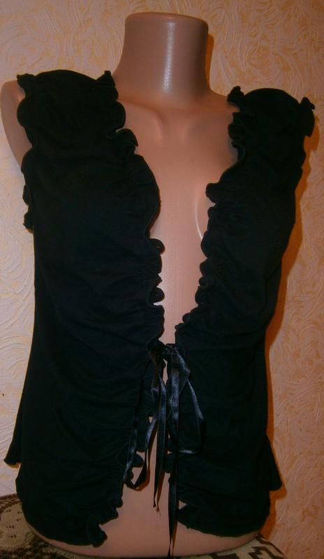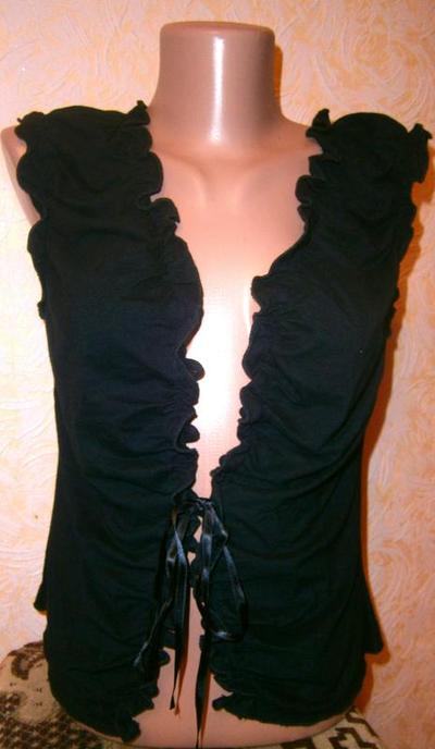 Стильная безрукавочка в классическом черном цвете. Спереди завязываеться на бантикПодойдет на размер 10 12 и 14 Цвет: Чёрный Состав: Вискоза эластан Размер: 40 / 12 / L Ещё: Другие вещи Etam |
