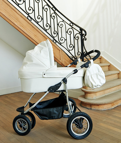 Классическая белая коляска от люксового бренда Théophile & Patachou (Бельгия). Предполагает использование двух кузовов по мере того, как малыш растет и учится сидеть.