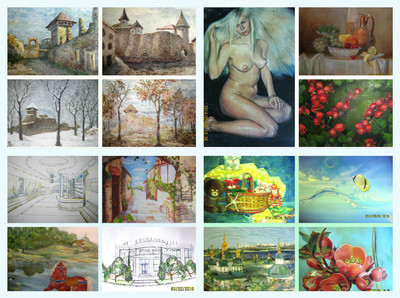 Декорирование, выполнение картин под заказ и роспись стен в каждом из этих ресторанов: "Хуторок" в г. Одесса пляж Ланжерон, 1A ; "Буржуй", г. Винница, ул.Театральная , 24 ; "Гоголь" , г. Миргород ,ул.Якова Усика, 18. Рестораны, кафе Киева: "Василек", "Русалочка" в Гидропарке; боулинг клуб "Страйк" (летняя площадка) по Проспекту Победы ,84; , ресторан "Карусель" ул, Райдужна, 8. Ресторан -пиццерия ул, Якуба Коласа, 10.. Роспись в интерьере частных домов, бассейнов и т.д
