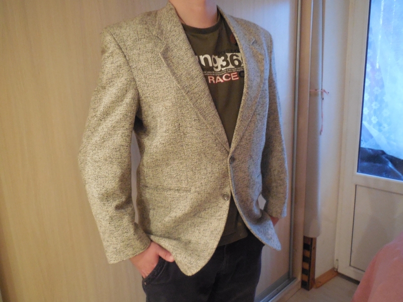 -Пиджак индивидуального пошива( размер 54-56,цвет: темно серый.,шелковая подкладка.,длина пиджака(сверху до низа): 80 см.,длина рукава : 65см.,объем груди: 57см.)=100грн