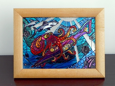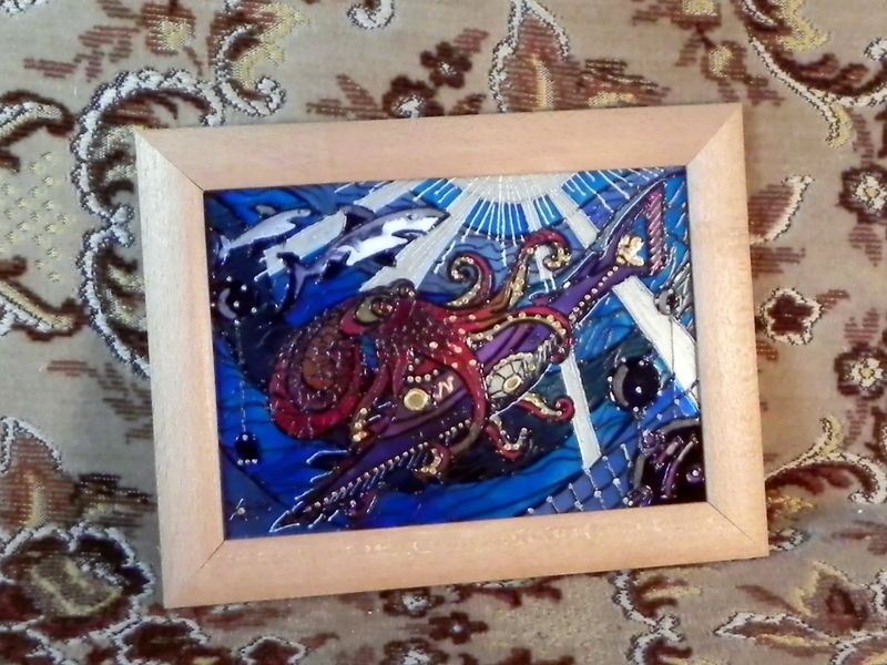 Витражная картина «Подводная схватка» - Картины, рисунки