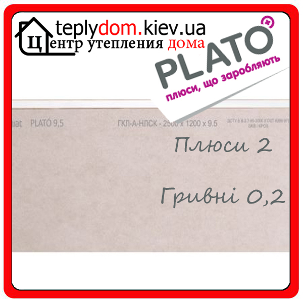 Купить потолочный гипсокартон Plato, Вы можете позвонив по телефону +38 (044) 338 37 48, +38 (067) 814 25 88 Гипсокартонная плита PLATÓ 9,5 - толщина 9,5 мм, стандартная длина 2000, 2500, 2600 3000 мм, стандартная ширина 1200 мм. 1 м2 плиты толщиной 9,5 мм весит около 7,4 кг. Используются для монтажа перегородок, облицовки стен и потолков на несущей конструкции, для облицовки в два слоя на металлической конструкции, а также в качестве сухой штукатурки. Допускается к применению в помещениях с относительной влажностью воздуха до 70%. Купить потолочный гипсокартон Plato вы можете на сайте http://teplydom.kiev.ua/Gipsokarton/ |