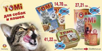 - влажные корма ТОМИ - идеальное решение для домашних приверед и животных с проблемами полости рта;