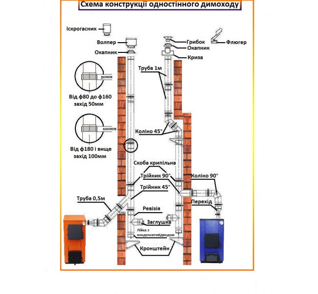 Мы предлагаем вам трубы и комплектующие детали для одностенных и утепленных дымоходов, вентиляционных каналов из нержавеющей и оцинкованной стали. В зависимости от различных условий эксплуатации дымоходы имеют разные конструктивные особенности и производятся они из различных материалов. Технологии производства и материалы, которые используются в производстве комплектующих, влияют на работу котлов или топок и на срок службы дымоходов. Дымоходы могут использоваться на различных видах отопления, требуют малой площади установки и является несложными при монтаже. Изготовление продукции осуществляется на основе ГОСТ 3262-75, п. 2.16. |