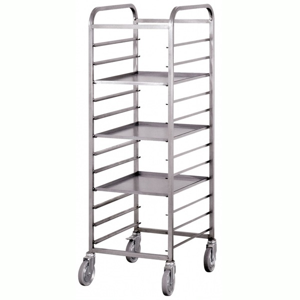 Шпильки из нержавеющей стали – это передвижной стеллаж на колесах который используется для складывания подносов, гастроемкостей, противней и д.т. Шпильки из нержавейки используют в столовых, пекарнях, продуктовых цехах. Стеллаж-шпилька изготовлен из качественной нержавеющей стали, оснащен поворачиваемыми колесами с нагрузкой 50 кг на каждое. В наличии новые шпильки из нержавейки: - 670*470*1680 мм (14 противней 600*400 мм) – цена 3000 грн - 595х340х1680 мм (15 противней GN 1/1) – цена 2800 грн У нас только высококачественное оборудование из нержавеющей стали для профессиональной кухни ресторана, столовой, общепита. |