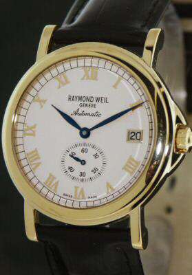 продам мужские механические часы Raymond Weil Automatic 2835 Водонепроницаемые 30 м Материал корпуса: нерж сталь, Позолота (полное) Стекло сапфировое с антибликовым покрытием Цифри римские Материал браслета: кожа (аллигатор ) Состояние: отличное |