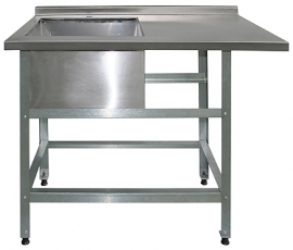 Нейтральное оборудование из нержавеющей стали (нержавейки) производится в соответствии со стандартами санитарной службы Украины. Стол с моечной ванной может быть дополнительно оснащен полками, что очень удобно для размещения посуды или другого кухонного инвентаря. Ванну моечную можно разместить с левой и с правой стороны от рабочей поверхности стола.