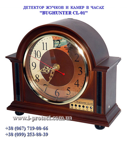 Закамуфлированный обнаружитель жучков и камер в часах BugHunter CL-01. Дизайн в виде настольных часов позволяет использовать детектор незаметно.