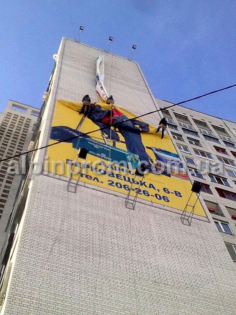УСЛУГИ АЛЬПИНИСТОВ – РАБОТЫ НА ВЫСОТЕ: • размещение наружной рекламы; • монтаж и демонтаж баннеров; • установка объемных букв и вывески; • уборка снега с крыши; • удаление (сбивание) сосулек; • обрезка деревьев; • мойка окон и фасадов. • наружное утепление квартир и домов; ПОДРОБНЕЕ НА САЙТЕ alpinprom.com.ua СЕРГЕЙ 0443608270, 0973264349, 0936164397 |