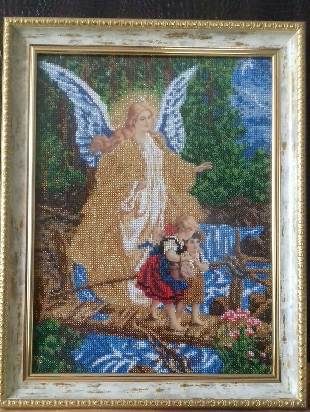 Картина "Ангел-хранитель" вышита бисером. Рамка багет, стекло антиблик. |