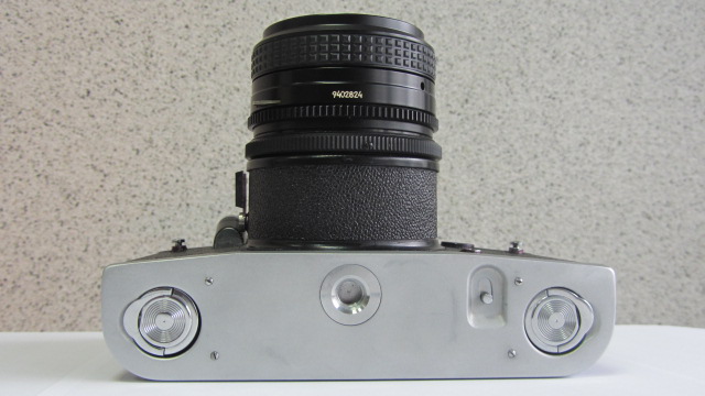 Наводка на резкость производится по матовой поверхности, микрорастру и клиньям в центре поля видоискателя. На корпусе камеры предусмотрено съемное устройство для крепления ламп-вспышек.