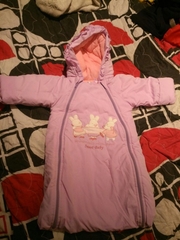 Демисезонный детский конверт с рукавами.На рост 62 см.Прорези для ручек можно оставить открытыми,а можно закрыть.По бокам две молнии для более удобного использования. Материал мягкий и приятный на ощупь. Внутри -трикотаж. Цвет внутри розовый, снаружи -нежно сиреневый. Состояние -очень хорошее |