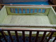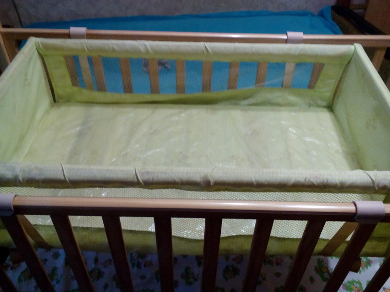 Съемная люлька подходит для деток до 3 мес. Крепления к кроватке надежные. При движении малыша, люлька сама раскачивается. По бокам стенки из сеточек, можете наблюдать за ребенком, лежащим в люльке.