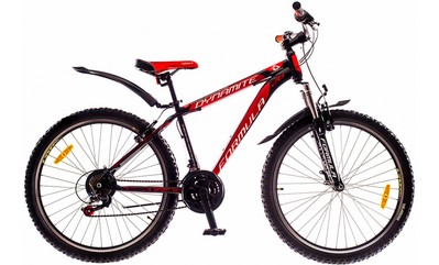 Продаем новый велосипед Formula Dynamite 2016. Велосипед 2016 года. Гарантия 12 месяцев. Купить велосипед Formula Dynamite, вы можете у нас, так как цена у нас самая низкая. На велосипед мы предоставляем сертификат качества. На Велосипеде Формула Динамит вы сможете кататься как по горной местности так и по парковым дорогам. Лучший выбор лучшая цена. Доставка в любой регион Украины, расчет при получении. Купить велосипед Formula Dynamite в рассрочку, частями или в кредит от Приват банка вы можете у нас на сайте. http://velo-delo.com.ua/formula-dynamite-26-2016.html Характеристики Велосипед Formula Dynamite 26 2016 Материал рамы Сталь Hi Ten Размер рамы 16; 19 Тип тормозов Ободные Диаметр колес 26 Вилка MOZO, амортизационная Манетки индекснные, грипшифты Тормоза V - brake, сталь Количество скоростей 21 скорость (3*7) Задний переключатель Shimano TZ-50, индексный Кассета 7-к, индексная Ручки переключения Shimano SL-RS35 Цепь ТЕС Руль Сталь, черный, sandblasted, 680мм Каретка Картридж, Neco Шатун Сталь в пластике, 24*34*42T Педали Пластик, на подшипнике Втулка передняя Спорт сталь, 14G 36H Втулка задняя Спорт сталь, 14G 36H Обод Алюминий, двойной усиленный, 14G 36Н Покрышки 26X2.35 Дополнительно Крыло пластик, подножка