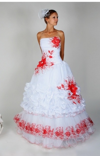 Свадебное платье от свадебного салона Elen-Mary. Шикарное платье с красной вышивкой и 3-D цветами из вышивки. Размер 38-44, рост 155-165см. г.Киев, примерка по записи: 067-291-56-68 Елена. Цена 6000+ подъюбник к платью в подарок |