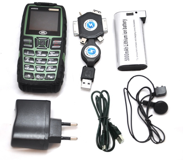 Комплектация Land Rover AK8000: Противоударный Land Rover AK8000,Наушник(и),Коробка,Аккумулятор,Зарядное устройство 220V,Комплект переходников для использования телефона в режиме power bank mobile