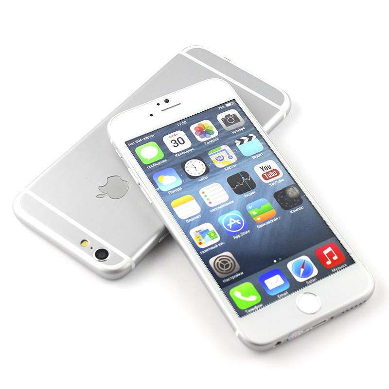 Копия iPhone 6 полностью повторяет оригинальный телефон: разъемы, вес, расположение кнопок, дизайн и надписи совершенно идентичны оригинальному телефону. Яблоко выгравировано в корпусе и нанесено хромом, надписи лазерное напыление, не стирается со временем. У новинки имеется разъем Lighting а так же отверстие под наушники. Корпус создан из высокопрочного металла. Дисплей копии iPhone 6 защищен износостойким стеклом.