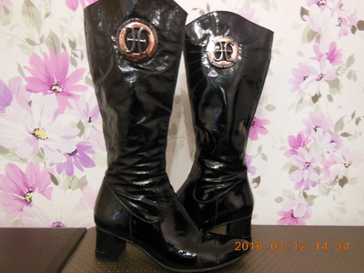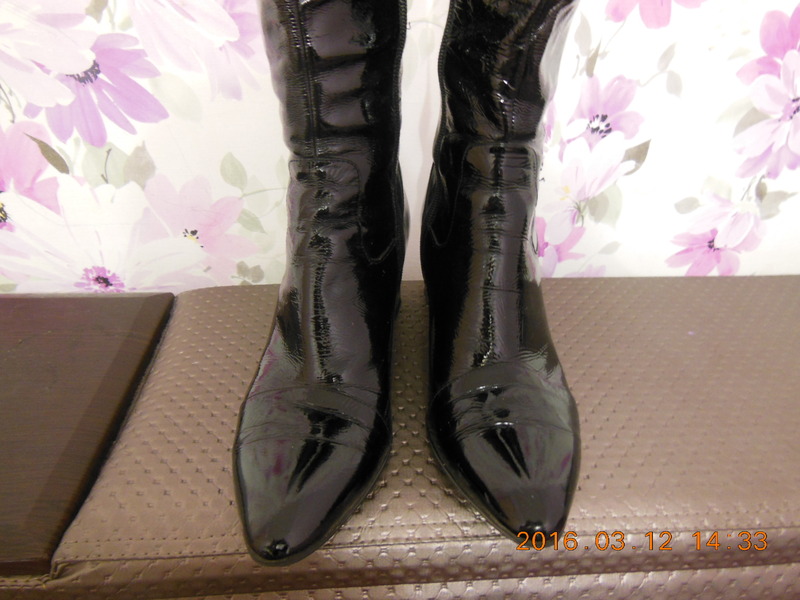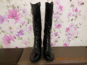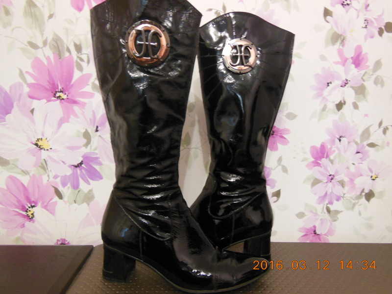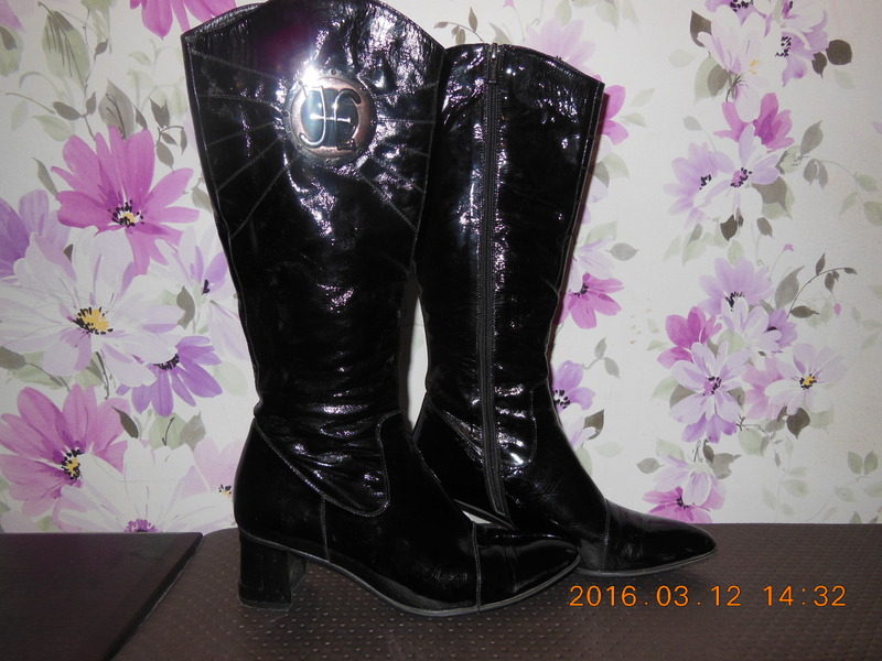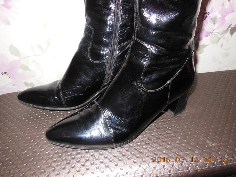 сапоги черные, лакированные.узкий,изящный носок.каблук 6 см. состояние отличное.слегка поцарапан один носок, но нужно присмотреться.на ноге очень изящно.39 р. 0968170937 |