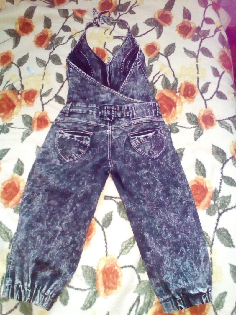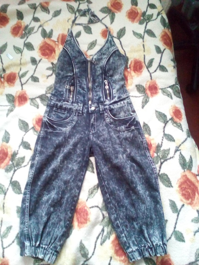 Продам комбинизон джинсовый, сделан бриджами внизу на резинке,верх регвлируется завязками за шею,замеры: длина ( замеряла от проймы под рукой) 85, объём талии 80,обьем бедер 98,грудь 82 размер 44, uno. БУ |