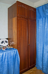 Перекладина для вешалок слегка прогнулась, но незначительно. Шкаф закрывается на ключ.