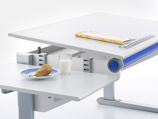 Специалисты в сфере разработки мебели для детей утверждают, что очень важным аспектом в конструкции детских столов для занятий является возможность изменения градуса наклона столешницы. Для рисования и схожих занятий рекомендуют устанавливать угол до 5°, для письма – около 10°, для чтения – до 20°. Детский стол moll Winner Classic, Beech позволит вашему ребенку самостоятельно и безопасно регулировать степень наклона столешницы. Также вы в любой момент сможете увеличит или уменьшить высоту ножек. В комплекте к каждому столу вы найдете сменные элементы в шести цветах, подставку для книг, крючок для портфеля и линейку-ограничитель на магнитах.