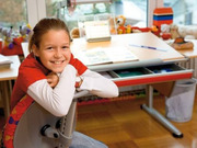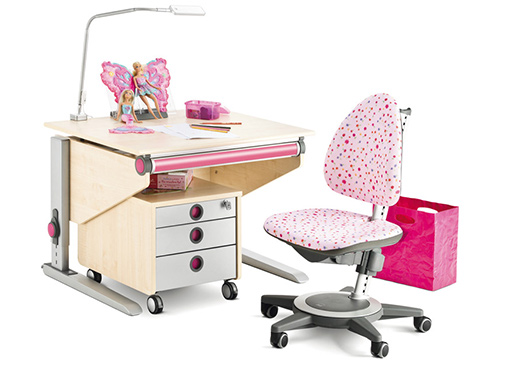 Ножки стола оборудованы ступенчатой регулировкой высоты – moll Comfort (автоматическая система, позволяющая регулировать высоту парты даже ребенку)