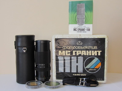 МС ГРАНИТ-11H— 2,5-кратный трансфокатор, охватывающий диапазон фокусных расстояний наиболее часто применяемых длиннофокусных объективов. В процессе съемки обеспечивает возможность выбора любого фокусного расстояния в диапазоне от 80 до 200 мм. Благодаря этому можно точно расположить фотографируемый объект в кадре, не перемещая фотоаппарат в другую точку съемки, что особенно удобно при репортажных съемках при работе с обращаемой пленкой.