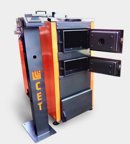 СЕТ 98 Р, мощностью 98 кВт - бытовой отопительный водогрейный твердотопливный стальной котел, предназначенный для отопления индивидуальных жилых, дачных домов, площадью до 1180 кв. м. Сталь 5 мм. Вес 1140 кг. Универсальный, работает на любых видах топлива: дрова, уголь, пеллеты, брикеты, отходы древесины. Длительного горения (на одной загрузке от 8 до 12ч.). В конструкции используется запатентованный трубчатый теплообменник из сертифицированной котловой стали, дает повышенный показатель КПД (более 90%) и отсутствие зон закипания. Твердотопливные котлы СЕТ работают по принципу двухступенчатого сжигания (полу-пиролиз). Продукция сертифицирована. В комплект входит: котел, группа безопасности, вентиляторы, пульт управления, документация, средства чистки!