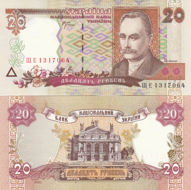 Банкнота 20 гривен 2000 г. - Монеты, банкноты