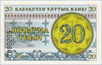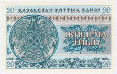 Купюры 10 и 20 тиын Казахстан - Монеты, банкноты