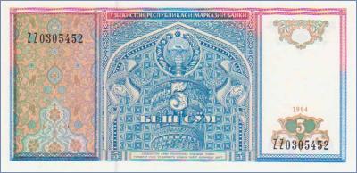 Банкнота 5 сумов Узбекистан 1994 г. - Монеты, банкноты