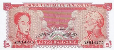 Банкнота 5 боливаров Венесуэла 1989 г. - Монеты, банкноты