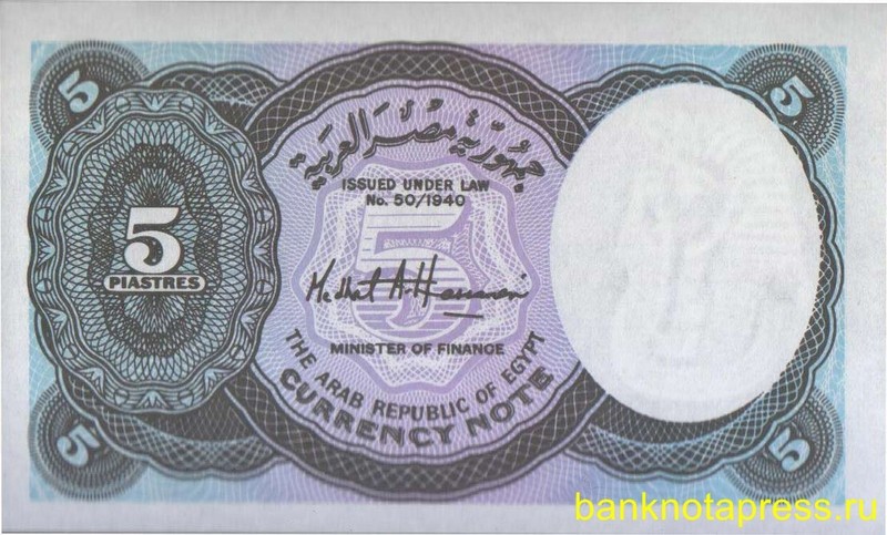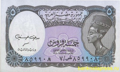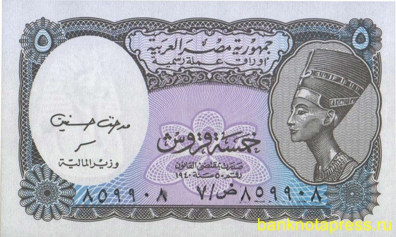 Банкнота 5 пиастров Египет - Монеты, банкноты