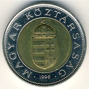 Разменная монета Венгрии. Автор монеты István Kósa. Аверс: Изображен Герб Венгрии с надписью Республика Венгрия. Реверс: Изображен номинал и год выпуска монеты с надписью монетного двора Будапешт. Материал Би-металл: центр - cталь покрытая латунью, кольцо - нержавеющая сталь. Гурт ребристый. |