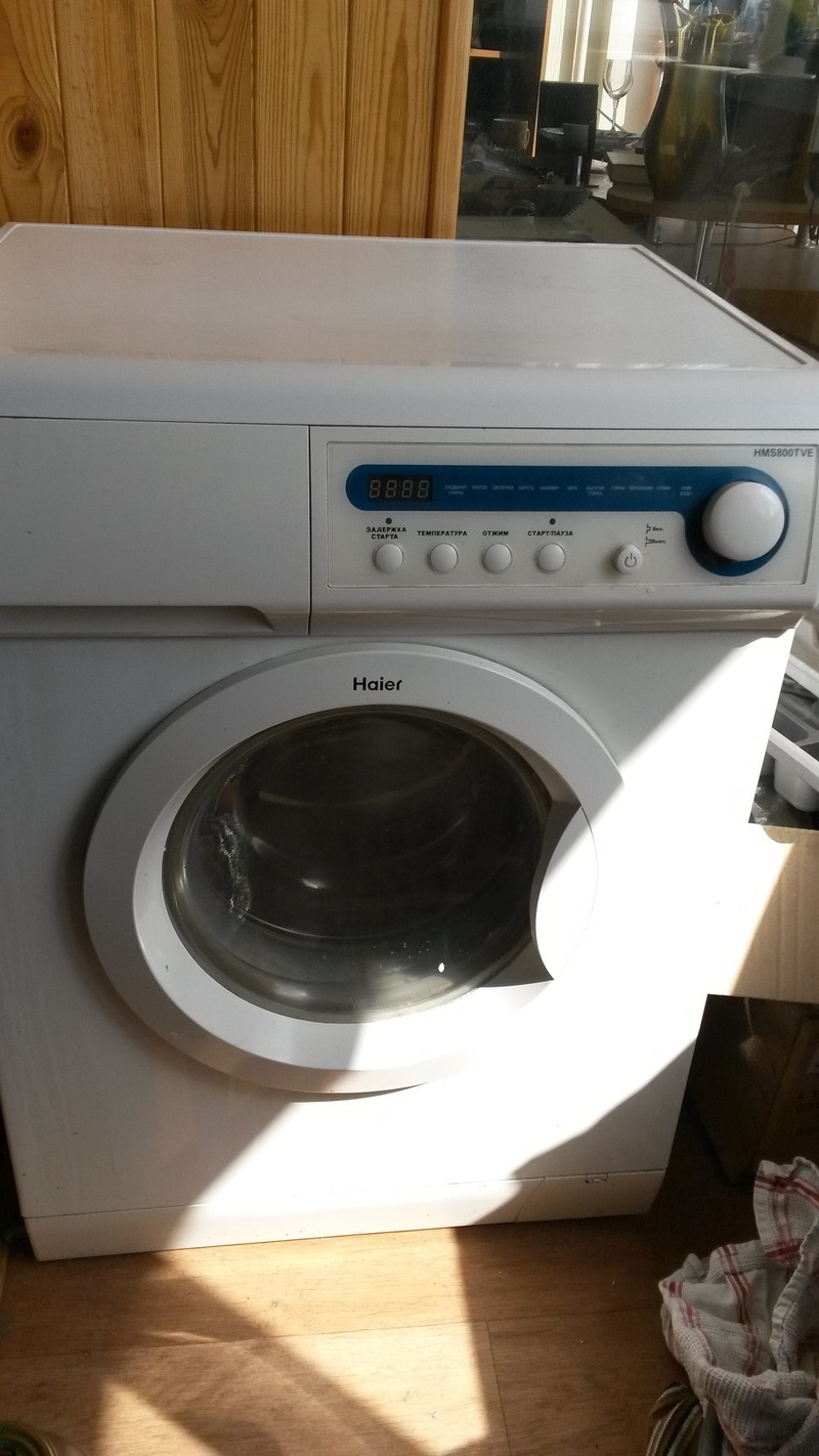 Продам стиральную машинку Haier HMS800TVE 60см в отличном состоянии. Хороший барабан. Есть все комплектующие для подключения (все шланги, болты и т п), инструкция. Отдельностоящая. Глубина 60см. Множество пррограмм: предварительная стирка, хлопок, синтетика, шерсть, кашемир, шелк, быстрая стирка, полоскание. Есть индикация стирки, полоскания, отжима, слива воды. Есть задержка старта, выбор температуры, мощности отжима, кнопка старта и паузы.