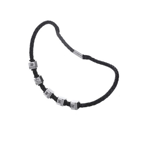 Предлагаем вашему вниманию непросто стильное украшение на шею, а настоящее энергетическое колье «Пять основ благополучия». Это пять металлических подвесок, выполненных в виде кубов, расположенных на стильном кожаном ремешке. На каждом кубе выгравирован определенный восточный иероглиф. Японские мудрецы давно использовали такие иероглифы, чтобы привлекать благополучие, здоровье, укреплять ум, контролировать финансы, воздействовать на общество и поддерживать гармонию в семье. Это пять составляющих общего понятия счастье.