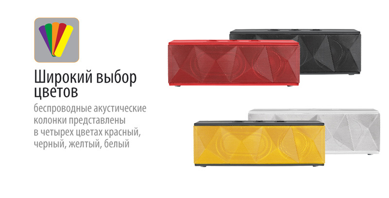 Беспроводная акустическая колонка, поддерживающая потоковое воспроизведение по технологии Bluetooth. Встроенные аккумуляторы обеспечивают работу до 10 часов, заряжаются через стандартный интерфейс USB от любого USB-порта персонального компьютера или адаптера переменного тока. Устройство поддерживает проводное подключение с помощью входящего в комплект кабеля.