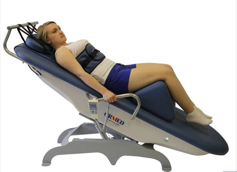 В Ормед Профилактик можно регулировать силу вытяжения, угол наклона кушетки и высоту подколенника.