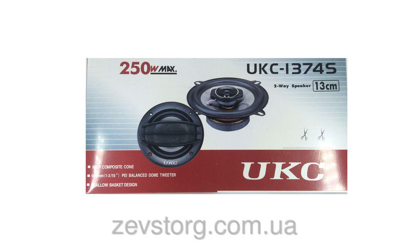 Автоколонки TS-1374   Автомобильные акустические динамики TS-1374 ― автомобильные колонки компании Pioneer. Данная компания является лидером среди производителей не дорогих автомобильных акустических систем. Многие автомобилисты отдают предпочтение именно продукции компании Pioneer.    Оригинальная и стильный дизайн от Pioneer не оставит безразличным никогда 25W динамики подарят Вам отличное качество любимой музыки а так же достаточно громкий звук Технические параметры: Диаметр: 13см Размер: 160мм Число полос: 2 Чувствительность, дБ: 91 Сопротивление, Ом: 4 Номинальная мощность входного сигнала 25 Вт Максимальная мощность, Вт 250   Комплектация: 2шт динамика Pioneer Pioneer TS-A1374S Провода для подключения В достижении качественного звучания надо соблюсти правильное установление динамиков, это играет определяющую роль в получение «чистого звука». Автомобильная акустика состоит из двух видов: коаксиальная и компонентная акустическая система. Эти разновидности имеют ряд достоинств, так и некоторые недостатки. Коаксиальная акустика устроена довольно просто: в корпусе одиночного динамика размещены несколько штук акустических головок. Преимущества этой системы в простоте ее установки и ее небольшой стоимости. К недостаткам относятся не очень качественный передаваемый звук и нет возможности установить динамики по своему вкусу. A вот компонентная акустика в большинстве своем представляет собой одну пару динамиков: высокочастотного и низкочастотного. В некоторых случаях в такую систему добавляют еще кроссовер, он служит для разделения частот между динамиками. Данная акустика воспроизводит звук гораздо качественнее, но в минус сложная в установке, да и стоит подороже. Если вы хотите добиться идеального звука акустики надо внимательно подходить к подбору динамиков. Динамики бывают высокочастотные, среднечастотные и басовые. В преимуществе данного подхода огромный выбор компонентов различных производителей динамиков. A недостаток –опять же высокая стоимость изделий. Весь ассортимент продукции вы можете посмотреть на сайте: www.zevstorg.com.ua