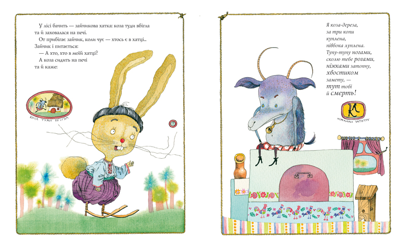 Наприкінці книжки — прецікава гра: спробуй допомогти зайчикові перемогти козу-дерезу... «Хвицай, хвицай, рогата пройдисвітко! А ми тебе — щип! щип! щип!.. Не плач, сіренький, ми з тобою... Вперед, до перемоги!»